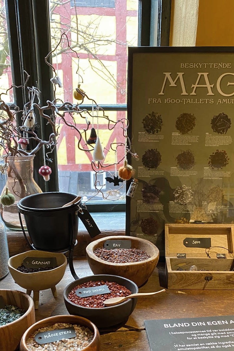 Möchten Sie vor bösen Geistern und Kopfschmerzen geschützt sein? Möchten Sie Streitigkeiten beenden und Trunkenheit beseitigen? Oder wie wäre es, wenn Sie Ihr Liebesleben verbessern und an Weisheit gewinnen? Mischen Sie Ihr eigenes Schutzamulett aus Löwenzahn, Nägeln, Wermut, Mondstein, Amethyst, Birkenblättern und mehr. Sie erhalten die Mischung in einem kleinen, hübschen Glasfläschchen, das Sie an einer Lederschnur um den Hals tragen oder genau dort hinstellen können, wo es am besten wirkt.