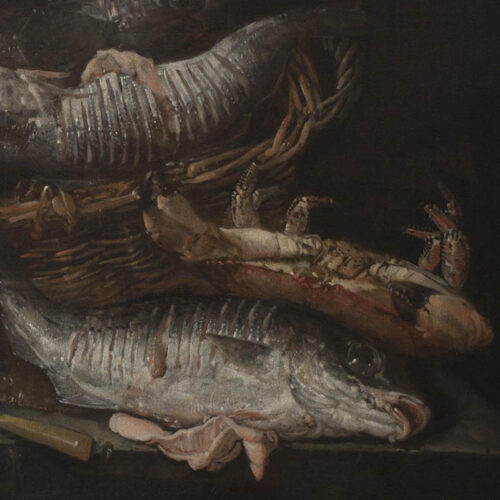 Illustration: Beijerenn, Abraham van – Detalje, Stilleben med fisk på et stenbord, 1618-1690, smk